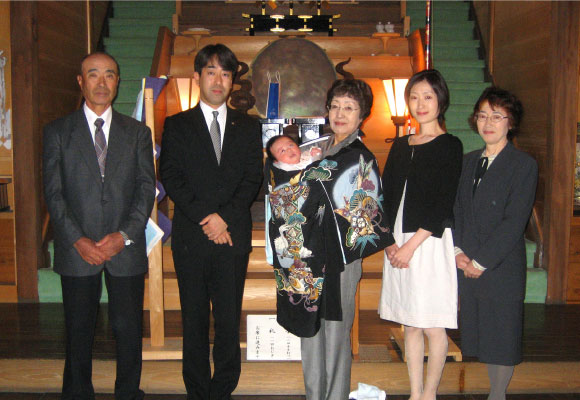 - お子様が無事に誕生したことをご神前に奉告し、神様のご加護のもと竹のように真っ直ぐ、聡く健やかに成長されるように祈願します。